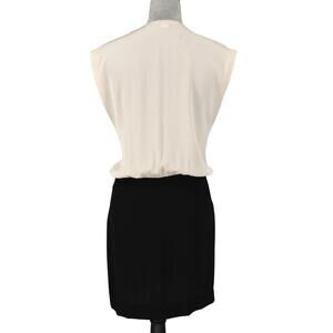 Diane Von Furstenberg Dress Womens 0 Ivory Black Silk Deep Cowl Neck Short DVF