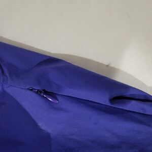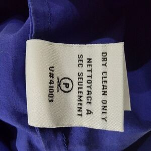 This is a Diane von Furstenberg dress for women in size 2. It is a sheath style dress with cap sleeves and a round neck. Made of blue cotton poplin fabric with ruched detailing, it has a tie closure at the neckline and a zipper accent. Suitable for various occasions like weddings, parties, or casual and business events, this dress is perfect for summer and spring wear.