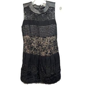 Diane Von Furstenberg Dress Womens 4 Sheer Alty Astra Novelty Black Mini NYE