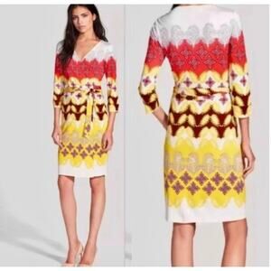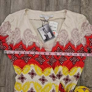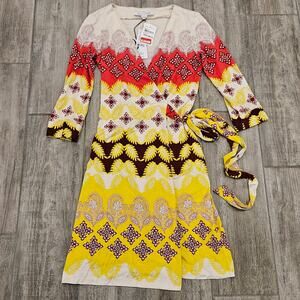 Diane Von Furstenberg Dress Womens 6 Yellow Red Julian Indian Border Wrap Silk