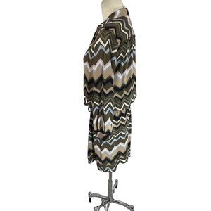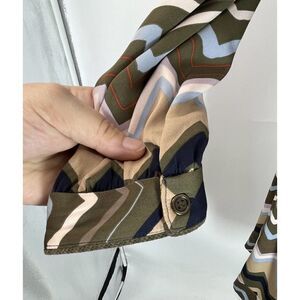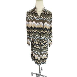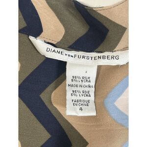 Diane Von Furstenberg Dress Shirtdress Bariloche Olive Chevron Print Silk Size 4