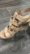 Step out in style with these elegant tan Color block wedge sandals. Leather upper/ wooden heel. Made in Brazil. Perfect for any occasion, these shoes offer both comfort and sophistication. Great used condition.