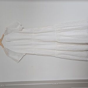 Diane Von Furstenberg Elegant White Eyelet Midi Tiered Dress Resortwear Sundress