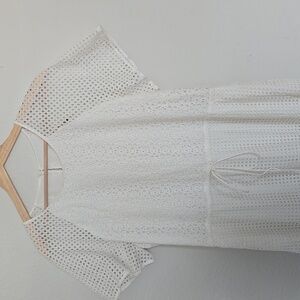 This elegant white eyelet dress is perfect for any occasion. Its intricate design offers a timeless look. Enjoy comfort and style with this beautiful piece.
