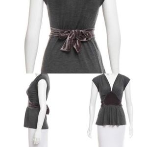 Charcoal Diane Von Furstenberg silk top with plunging neckline, velvet band at waist and tie accent at back. Perfect condition, worn once. 70% silk, 30% viscose.