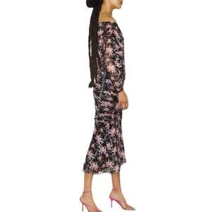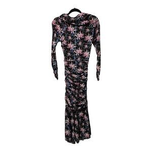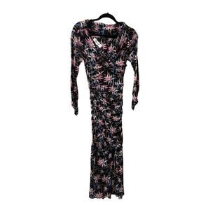Diane Von Furstenberg Floral Off the Shoulder Ruched Dress Black Size Medium