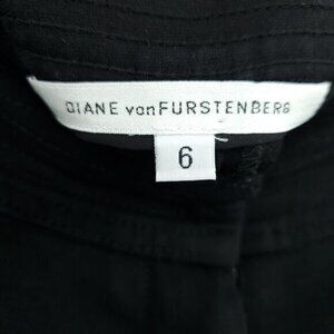 Diane Von Furstenberg Gavin Pants Wide Leg Stretch Ponte Mid-Rise 6 Black. As seen in the denim version on Kim K circa 2007! GUC with good overall used condition with light wear, and a flaw: multiple dropped stitches at waist embellishment (see last photo for a close-up).