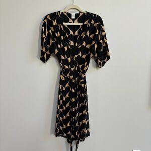 Diane Von Furstenberg Genevieve Spade Graphic Print Dress 6 Faux Wrap Black Tan