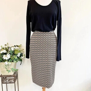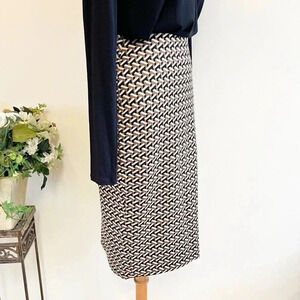 Diane Von Furstenberg Geometric Pencil Skirt Size 6 Black and Tan