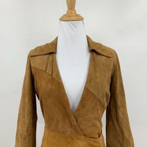 Diane Von Furstenberg Goat Suede Wrap Dress Womens 0 Brown Low Cut Tie Waist NEW