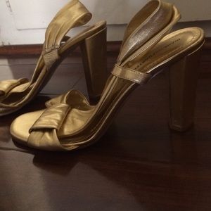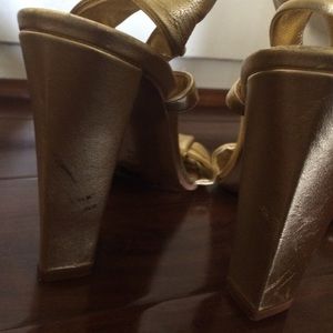 DVF Chunk 4" heel. Never worn, slight heel mark unique matte gold