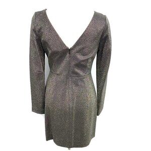 Diane Von Furstenberg gold sparkle back v-neck evening dress, Size 6