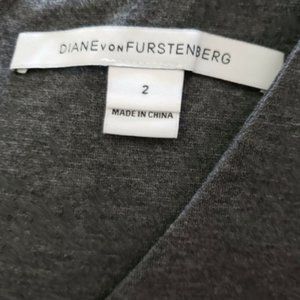 Diane Von Furstenberg Gray V-Neck Fit and Flare Structured Knit Dress Grey DVF 2