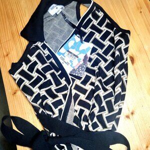 Chic, classic, and instantly recognizable — this Diane Von Furstenberg long-sleeve wrap dress is a timeless wardrobe staple. Featuring a bold green geometric print and DVF’s iconic wrap silhouette, this piece creates a flattering, feminine shape with effortless elegance. Perfect for work, events, date nights, or anytime you want to feel polished and confident.