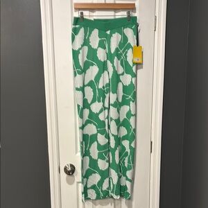 Diane Von Furstenberg Green and White Gingko Leaf Print Pants