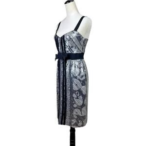 Diane Von Furstenberg Grey and Black Sequin Ariba Zip Up Bow Sheath Dress