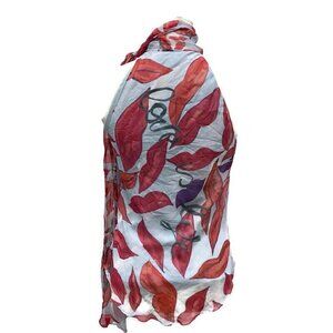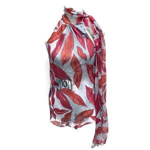 Diane Von Furstenberg grey w/red lip silk one arm sleeveless tie halter top, Size 6