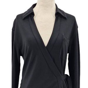 Diane Von Furstenberg Helena Dress Black V-neck Collared Wrap Dress Womens 4