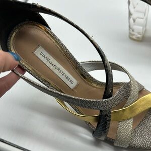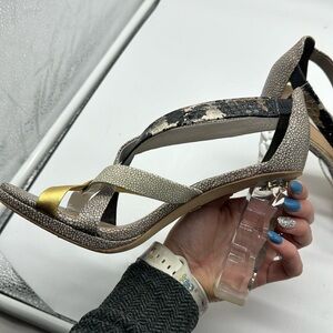 Diane Von Furstenberg Ibiza Sandal Clear Snakeskin Heels Size 6