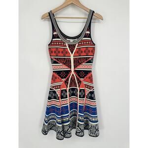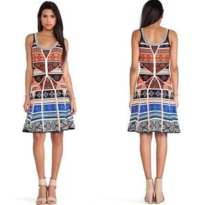 Diane Von Furstenberg Ilsa Sleeveless Fit and Flare Knit Dress Mini Geo Print