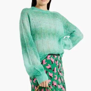 Diane Von Furstenberg Jandina Metallic Dégradé Crochet Knit Sweater Jade XS DVF