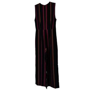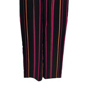 Diane Von Furstenberg Jumpsuit Black With Orange & Pink Colorful Vertical Stripes Sleeveless Ankle Length Wide Leg V Neck With Pockets