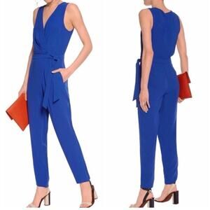 Diane Von Furstenberg Jumpsuit Sz 10 Wrap Blue Cordia Career Party Old Money