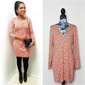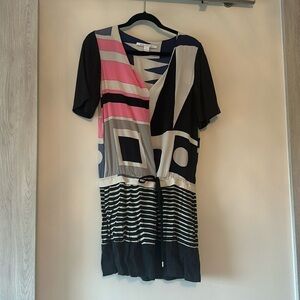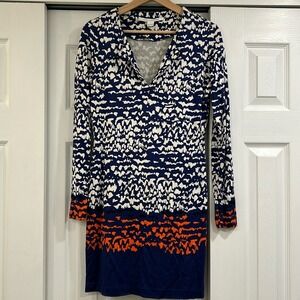 Diane Von Furstenberg Kaden Silk Blue Pink Floral Mini Dress 3/4 Sleeve Size 6