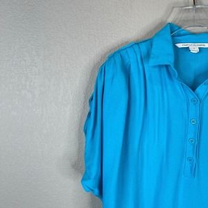 Diane Von Furstenberg Karin Shirt Dress Size 2 Turquoise Oversized Kimono Crepe