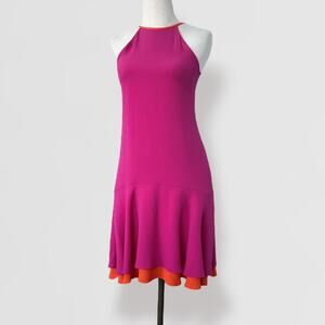 Diane Von Furstenberg 'Kera' Sleeveless Crepe Halter Dress Sz 0 Pink Orange