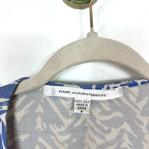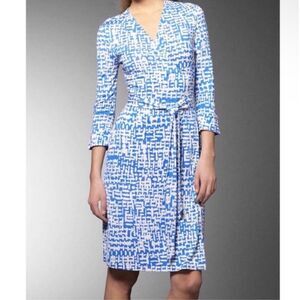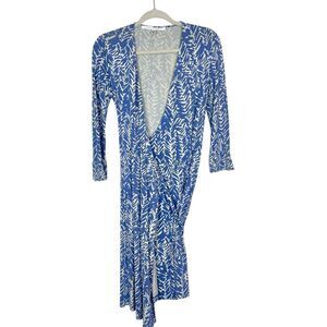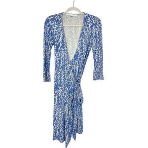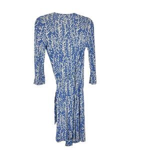 Diane Von Furstenberg Julian Wrap Dress Womens Sz 8 Blue Silk Jersey 3/4 Sleeve medium knit silk geometric abstract patterned