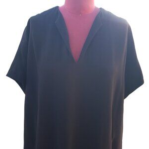 Diane Von Furstenberg Kora Dress Black Crepe Split V Neck Short Shift Small