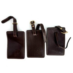 Diane Von Furstenberg Leather Luggage Tags Set Of 3 Brown Buckle Strap Old Money