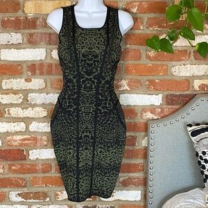 Diane Von Furstenberg Leopard Print Green Black Sheath Dress Size small New