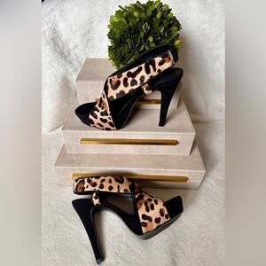 Diane Von Furstenberg Leopard Print Pony Hair Platform Heels – Size 8