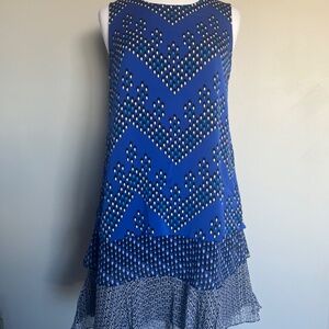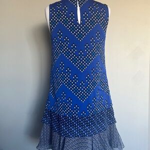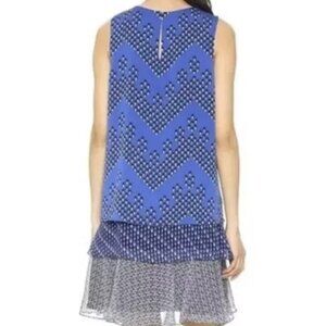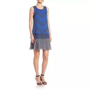 Diane Von Furstenberg Liza Geometric Cocktail Dress Layered Silk Crepe Ruffle