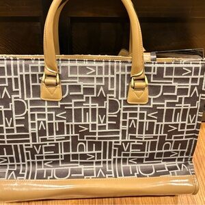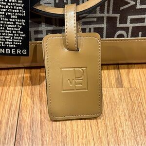 Diane Von Furstenberg Logo Large Fashion Laptop Tote Bag Olive & Camel 18x13x5