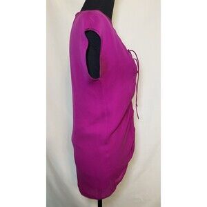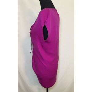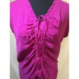 Diane Von Furstenberg Magenta Lace Up Front V-Neck 100% Silk Top SIZE 2 *READ*