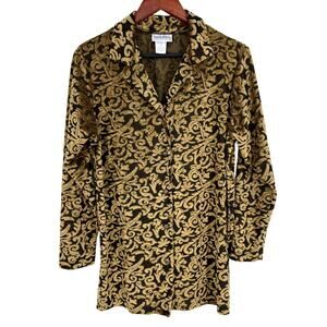Diane Von Furstenberg Medium Vintage Gold Velvet Burnout Holiday Christmas Top