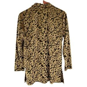 Featuring a luxurious gold velvet burnout design, this vintage top is perfect for the holidays or any special occasion.