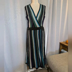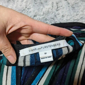 Diane Von Furstenberg Metallic Dress Cadenza Knit Wrap Blue Green Medium Midi