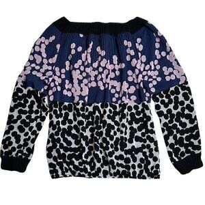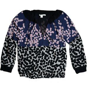 Diane Von Furstenberg Mikino chiffon blouse with multi color dot print and pleated keyhole tassel tie neckline.