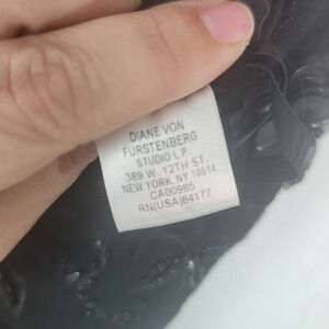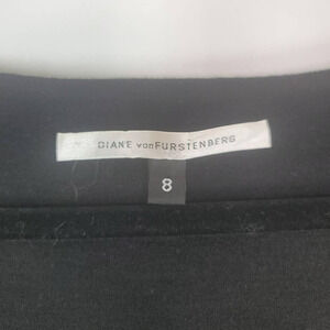 Diane Von Furstenberg Mini Dress Size 8 Embroidered Scoop Neck Short Sleeve Black Wool