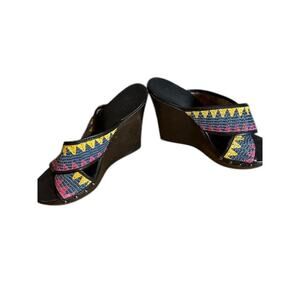 Diane Von Furstenberg Multi -Color Crisscross Wedges Women Sz 10