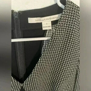 Diane Von Furstenberg NATASHA BLACK V NECK PRINT SHEATH DRESS Size 2