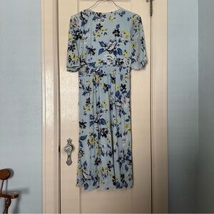 Diane Von Furstenberg Nala Dress Blue & Yellow Floral Babydoll Short Sleeve Sz M