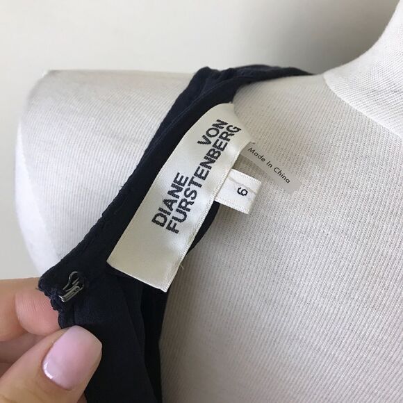 Diane Von Furstenberg Navy Ria Pleated Dress SZ 6