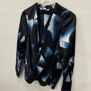 Diane Von Furstenberg New Issie Two Long Sleeve Silk Blouse Wrap Front Size 4