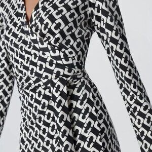 Diane Von Furstenberg New Jeanne Two Silk Jersey Wrap Dress Size 0 Chain Link