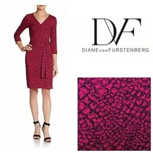 Diane Von Furstenberg New Julian2 true wrap dress in pattern/ Snake Dot Pink